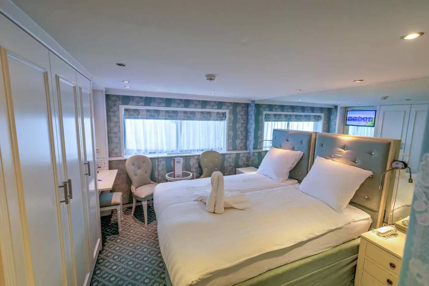 We group onboard accommodations into four categories: Interior , Oceanview , Balcony , Suite/Deluxe All of the staterooms accommodations are designed to be comfortable places you can kick back and relax in after a day of adventure. All staterooms and suites vary by ship, but every room offers a television, telephone, private bath, shower, vanity and a hair-dryer. And depending on your stateroom/suite category, you're accommodations many include other amenities such as bathrobes, sitting areas, even a whirlpool tub!