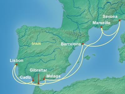 Cádiz may be the oldest inhabited city in the western world, with more than 3,000 years of history. Located on the southern coast of Spain, it borders both the Atlantic Ocean and the Mediterranean Sea. Christopher Columbus departed on two of his voyages to the New World from here. Cádiz quickly grew into a major city by importing gold and silver and exporting sherry and cork. By the 18th century, Cádiz had become the wealthiest port in Western Europe. This beautiful coastal city has been largely undiscovered by international tourists, but it is a popular destination for Spaniards in the summer and during Carnival in February and March.
